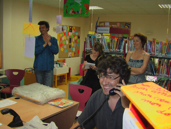 Jérémie au téléphone avec Jean-Claude Lalumière