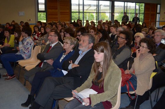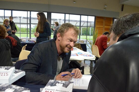 Vendredi 31 mai, salle d’animation, pour sa 8ème année le prix « jeune mousquetaire » a été remis à Nicolas Rouillé pour son roman « Le Samovar ». Présidé par l’écrivain Didier Daeninckx, plus d’une centaine de lycéens de Mirande, Condom et Nogaro ont participé cette année au Jury avec passion. Alain Guyard, lauréat 2012, était également là. Les 4 autres livres en concours cette année étaient « L’Effrayable » d’Andréas Becker, « Maudite soit-elle » de Vincent Desombre, « Que nos vies aient l’air d’un film parfait » de Carole Fives et « Brioche » de Caroline Vié.