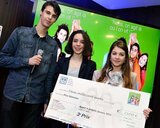 Vincent, Camille et Nina reçoivent le chèque du prix.
